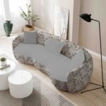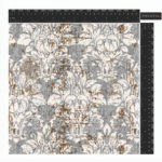 An ornate damask pattern with a distressed, vintage texture in shades of grey and off-white with hints of brown. The classic design evokes a sense of history and timeless elegance.