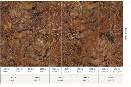 Size: 500 cm x 270 cm All murals are printed by default with 50 cm panel widths, but can also be ordered using 100 cm wide panels if desired.