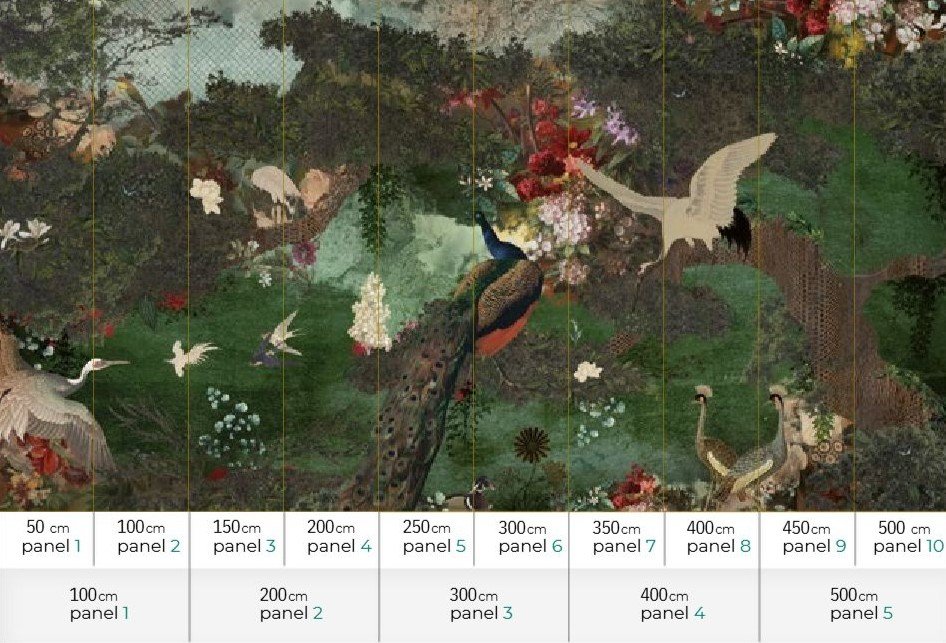 MU12028 Size: 500 cm x 270 cm All murals are printed by default with 50 cm panel widths, but can also be ordered using 100 cm wide panels if desired. Non-woven matt (50 cm panel), Textured Vinyl (50 and 100 cm panels), Textile (50 and 100 cm panels)