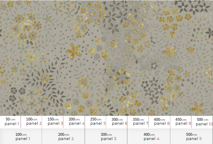 Size: 500 cm x 270 cm All murals are printed by default with 50 cm panel widths, but can also be ordered using 100 cm wide panels if desired.