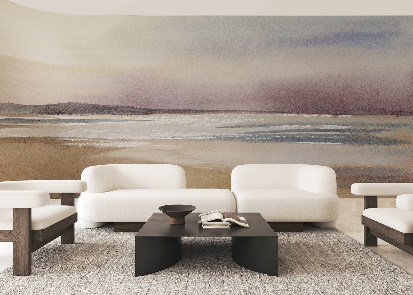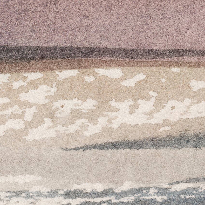 MD-19-B Wide watercolor splashes and a few brushstrokes outline a distant yet familiar coastline. A potentially infinite design, like the sea, emerges from an evanescent horizon.