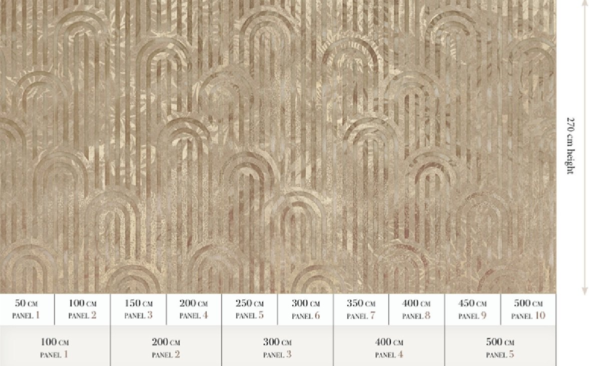 The Great Gatsby Reference No. - MU16014 Size: 500 cm x 270 cm All murals are printed by default with 50 cm panel widths, but can also be ordered using 100 cm wide panels if desired. "This mural can be custom made to fi t the dimensions of your wall : Non-woven matt (50 cm panel) Textured Vinyl (50 and 100 cm panels) Textile (50 and 100 cm panels) Metallic Gold (50 cm panel) Metallic Copper (50 cm panel) Silk Gold (50 and 100 cm panels) Grasscloth* (85 cm panel) can only be ordered as personalized walls