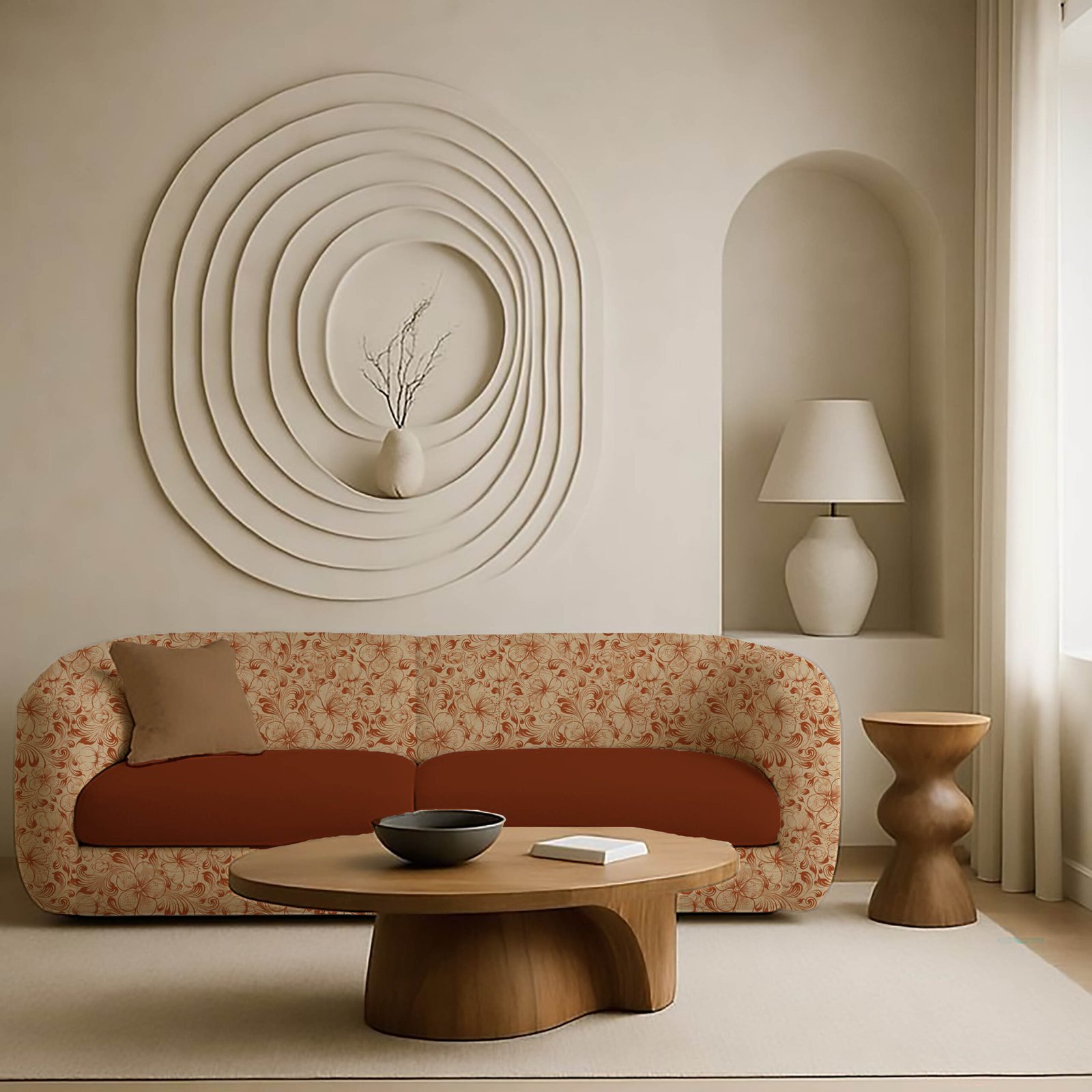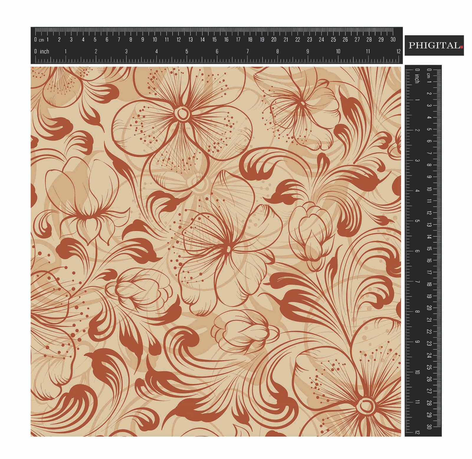 A textured pattern of stylized blossoms and leaves, reminiscent of a hand-woven textile. The blend of earthy tones creates a textured and inviting visual.